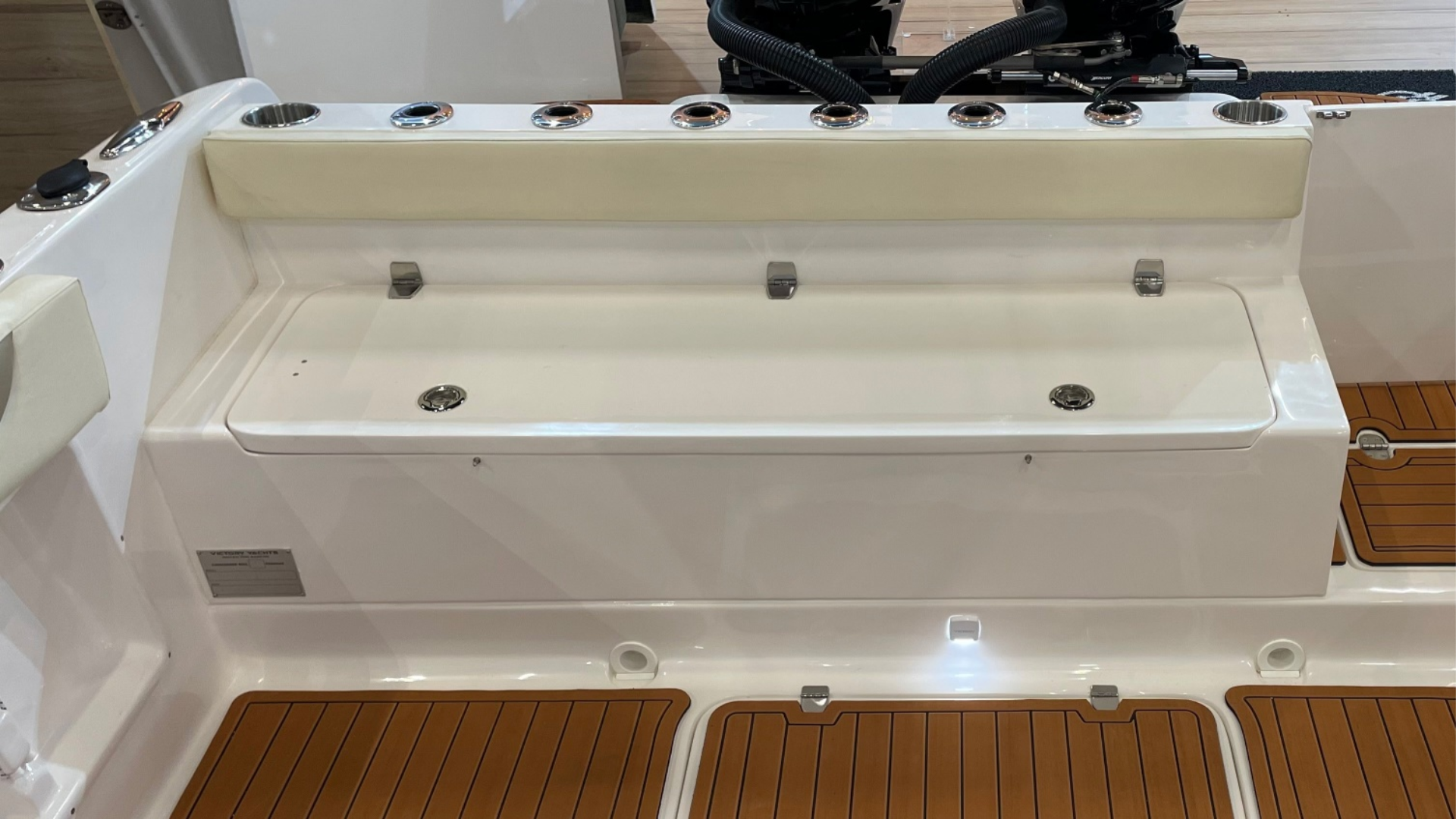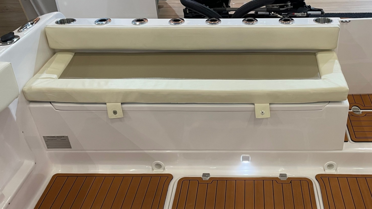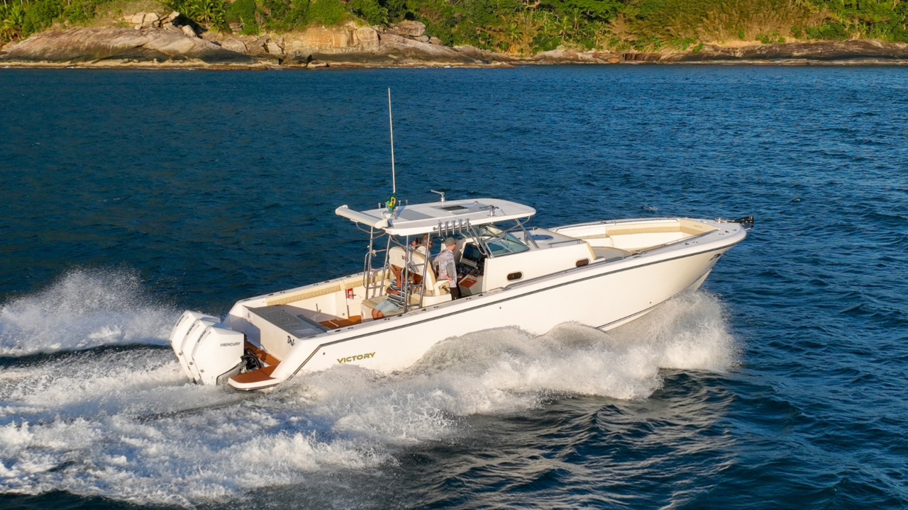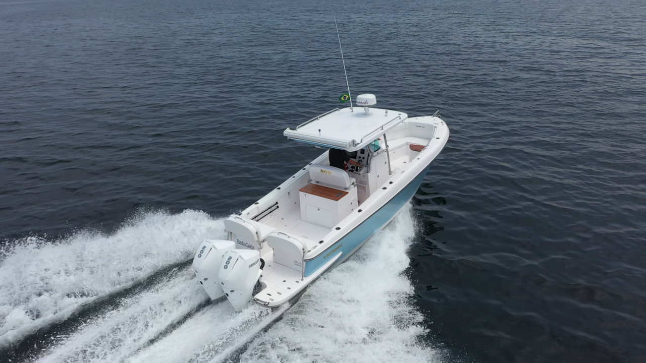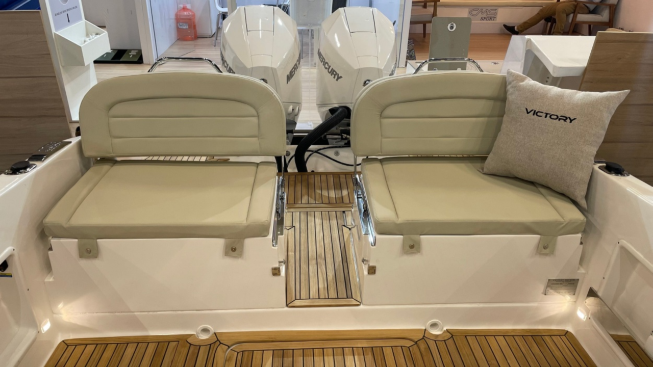 O espelho de popa, costado e fundo das Victory são laminados com espuma de divinycell, isto garante menor manutenção futura.