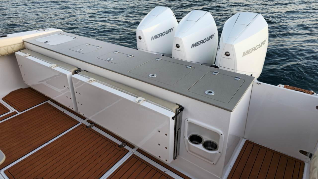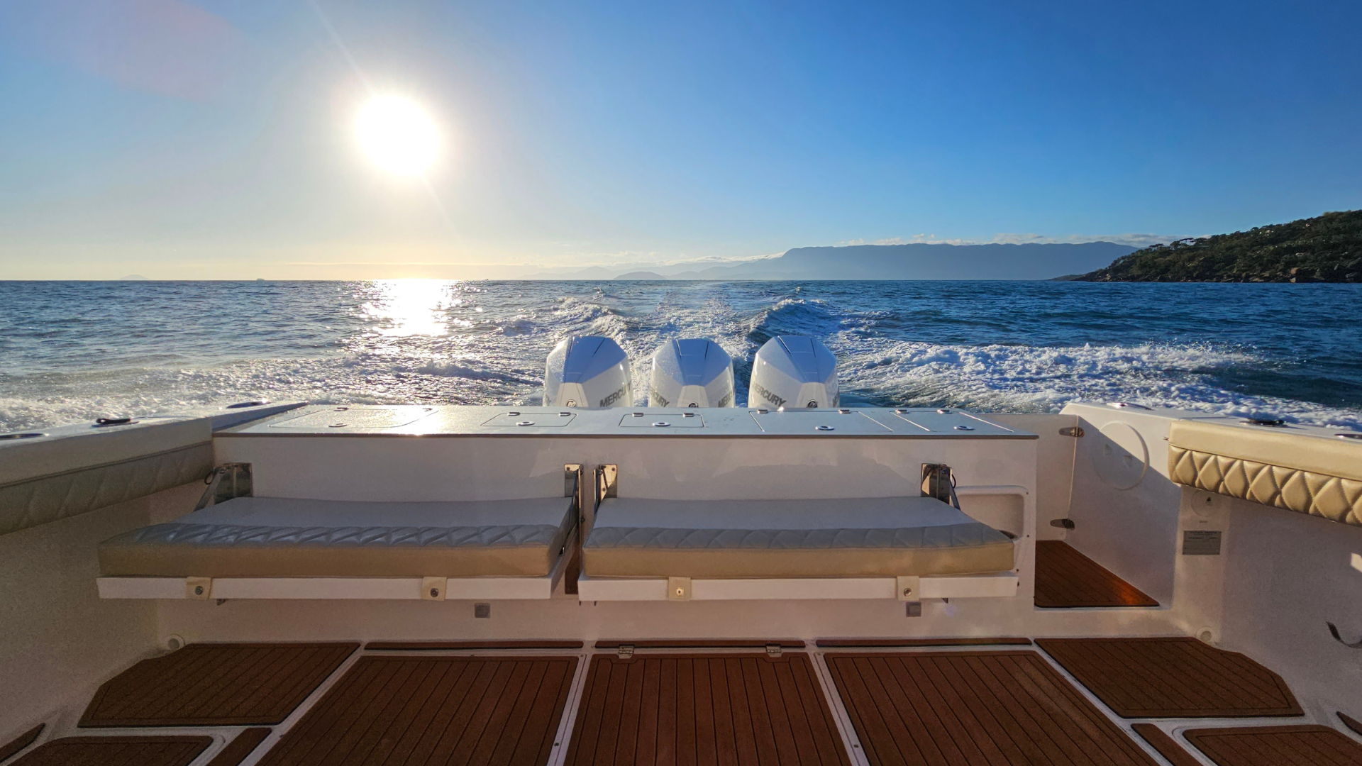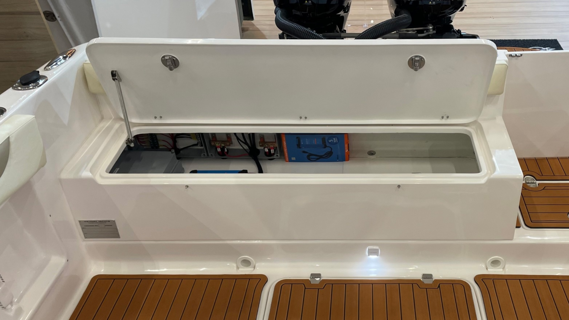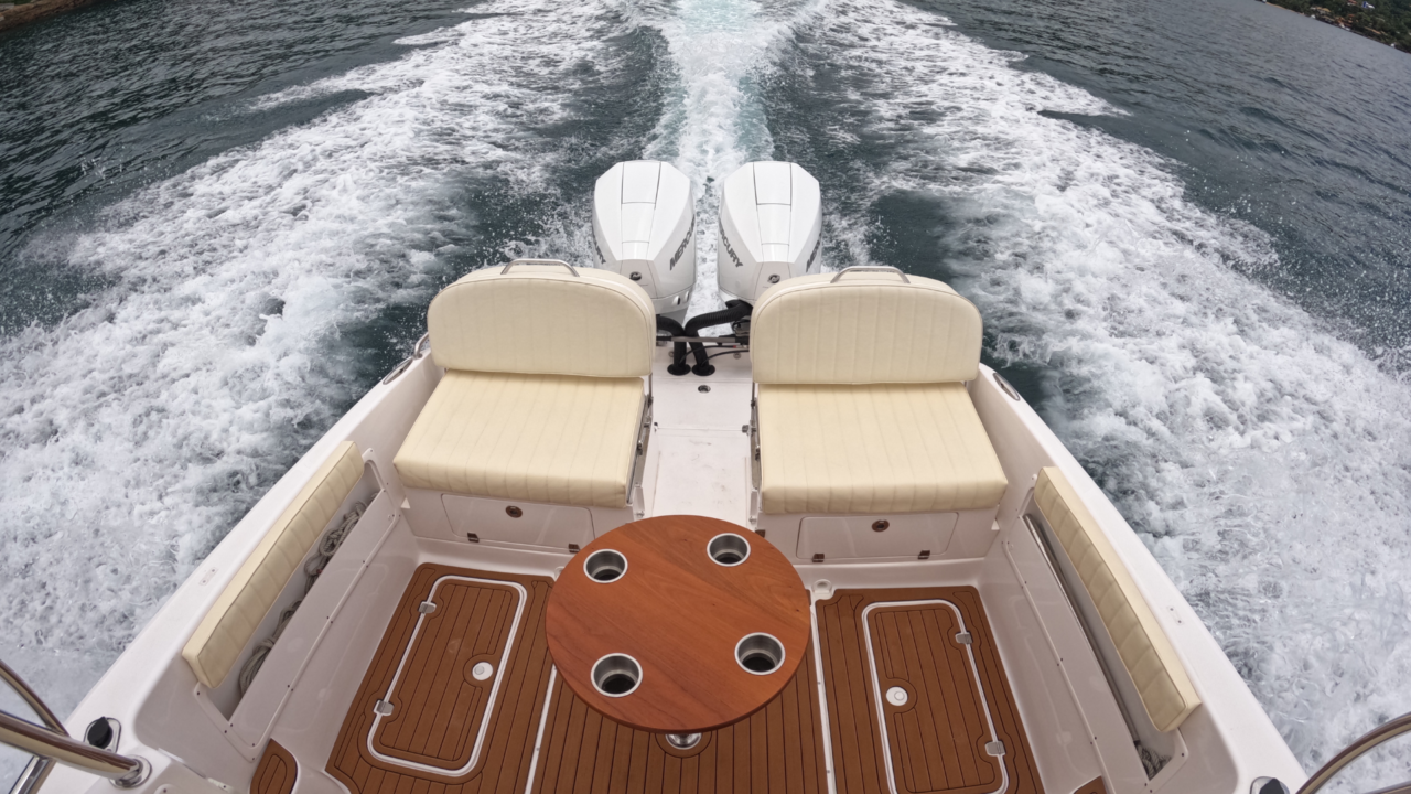 O espelho de popa, costado e fundo das Victory são laminados com espuma de divinycell, isto garante menor manutenção futura.