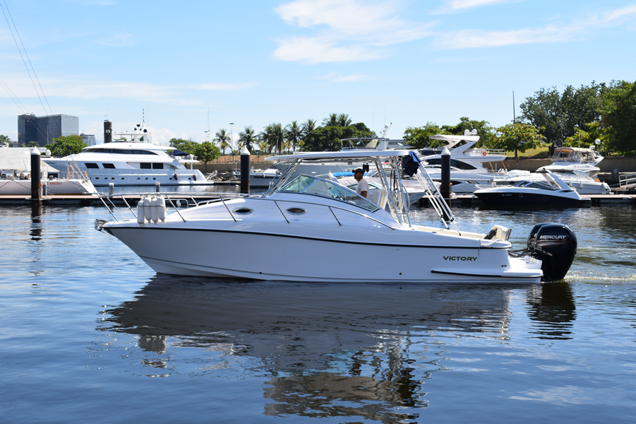 As lanchas Victory Yachts são fabricadas com moderna tecnologia e material leve (fibras, resinas, espumas) que facilitam a atracação.