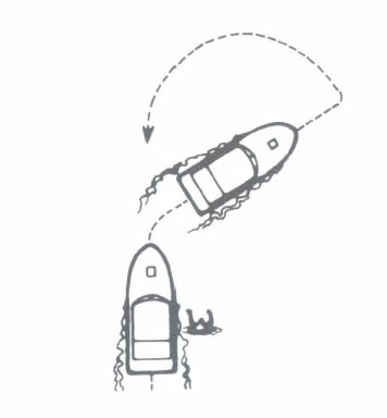 Em um barco a motor quebramos o seguimento e iniciamos uma guinada imediata em direção à vítima fazendo um simples círculo (Método Williamson) considerado atualmente como o mais eficaz e rápido para uso em embarcações a motor amadoras independentemente da experiência do seu condutor.