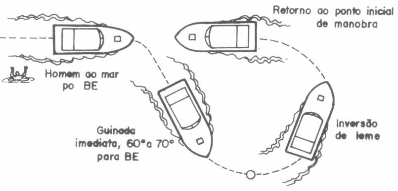 – À noite ou em visibilidade reduzida, e quando você não tem certeza do instante em que a pessoa caiu ao mar, a manobra de “boutakoff” abaixo mostrada é a melhor maneira de inverter o rumo e chegar a recíproca do rumo da queda. ( Barcos a motor.)