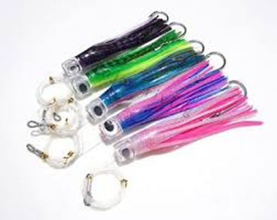 Os tamanhos das iscas são geralmente proporcionais ao do peixe que se tem como alvo,( 4”,6”,9”12” polegadas), a quantidade por teaser também deve se limitar entre 6 a 10 iscas a uma distancia não maior que 60 cm entre as mesmas, para não se ter um equipamento longo demais que se torna um problema na hora de soltar e colher rapidamente. Na frente das iscas, emendas e aonde mais for possível coloque distorcedores, que irão ajudar no trabalho das iscas como no aumento da vida útil do equipamento.