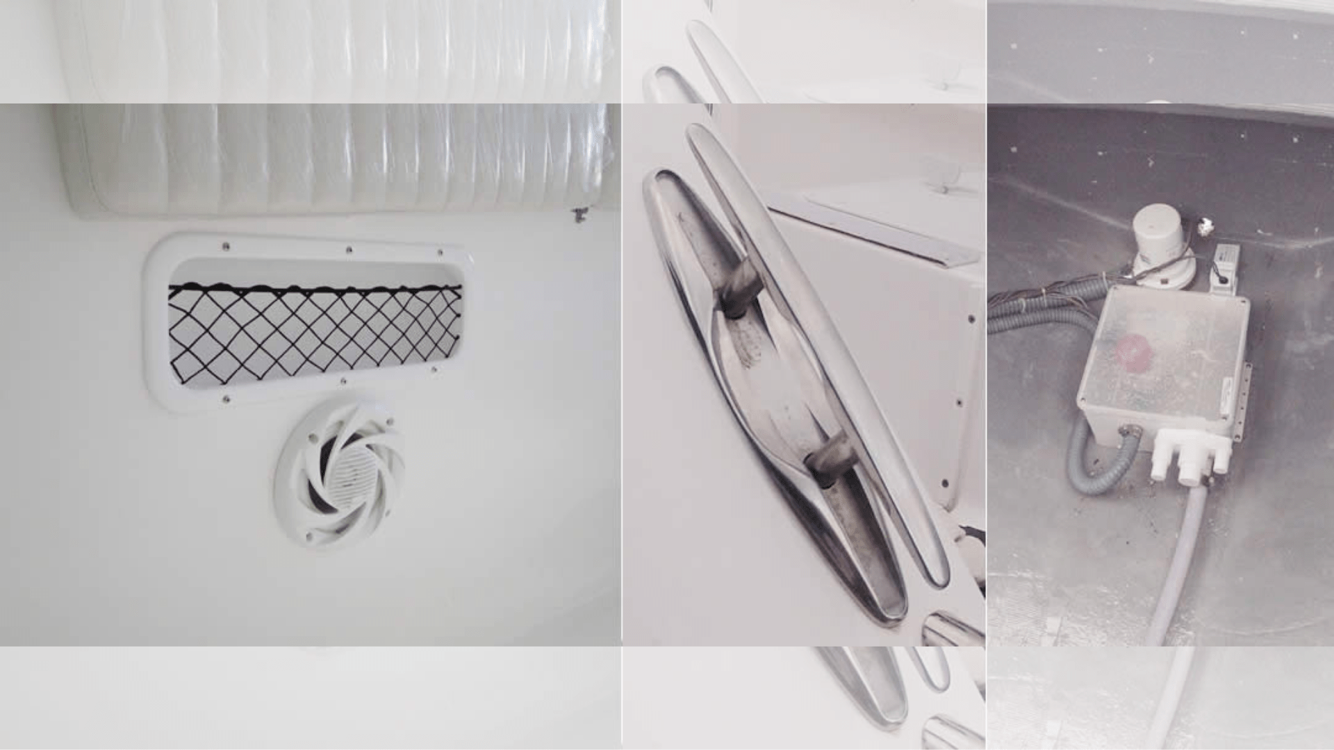– 60-liter freshwater tank, freshwater pump, and aft shower.