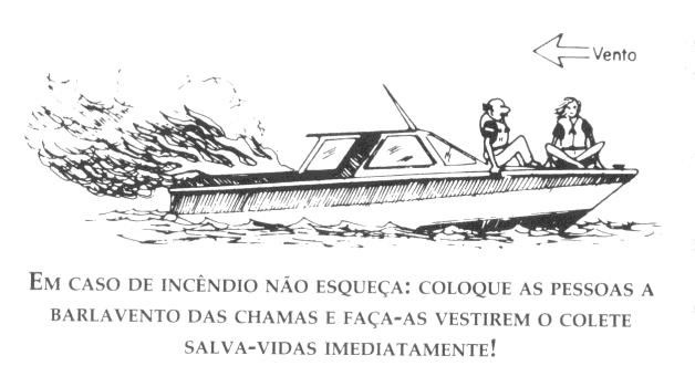 Lembre-se que nenhuma embarcação está imune a um incêndio e que o melhor método de combate é uma contínua prevenção. Em caso de incêndio não esqueça: coloque as pessoas a rlavento das chamas e faça-as vestirem o colete salva-vidas imediatamente !