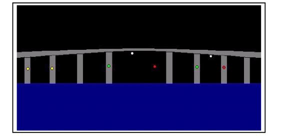 I – no centro, sob a ponte, uma luz rápida Branca e nos pilares laterais luzes fixas ou rítmicas, de acordo com as convenções para o balizamento marítimo;