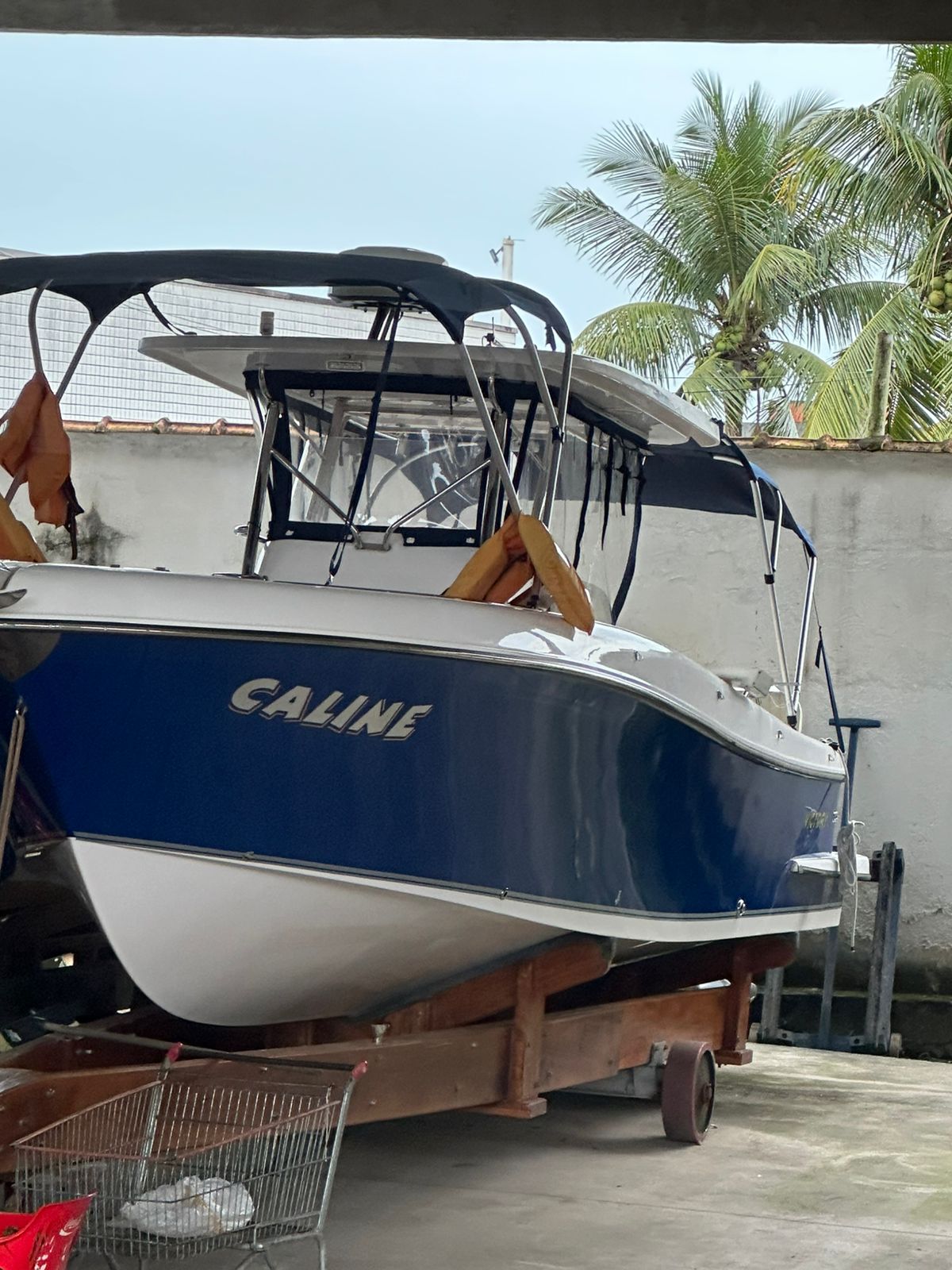 Uma carreta rodo encalhe embarcação 30 pés feita em madeira garapeira viga 8×30 com dois berço com acabamento em carpete envernizado com Verniz auto sólido
