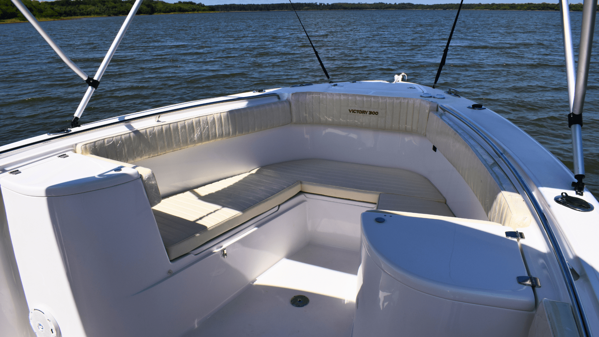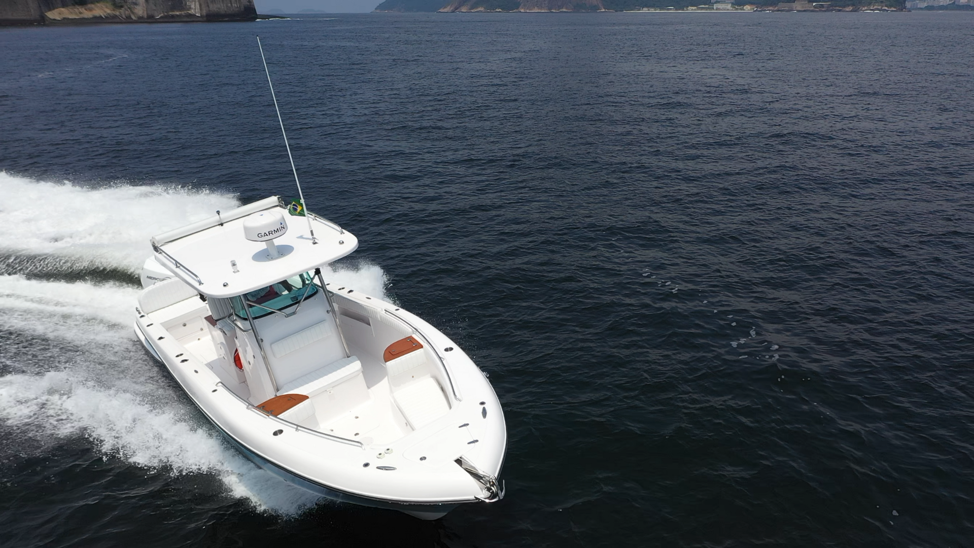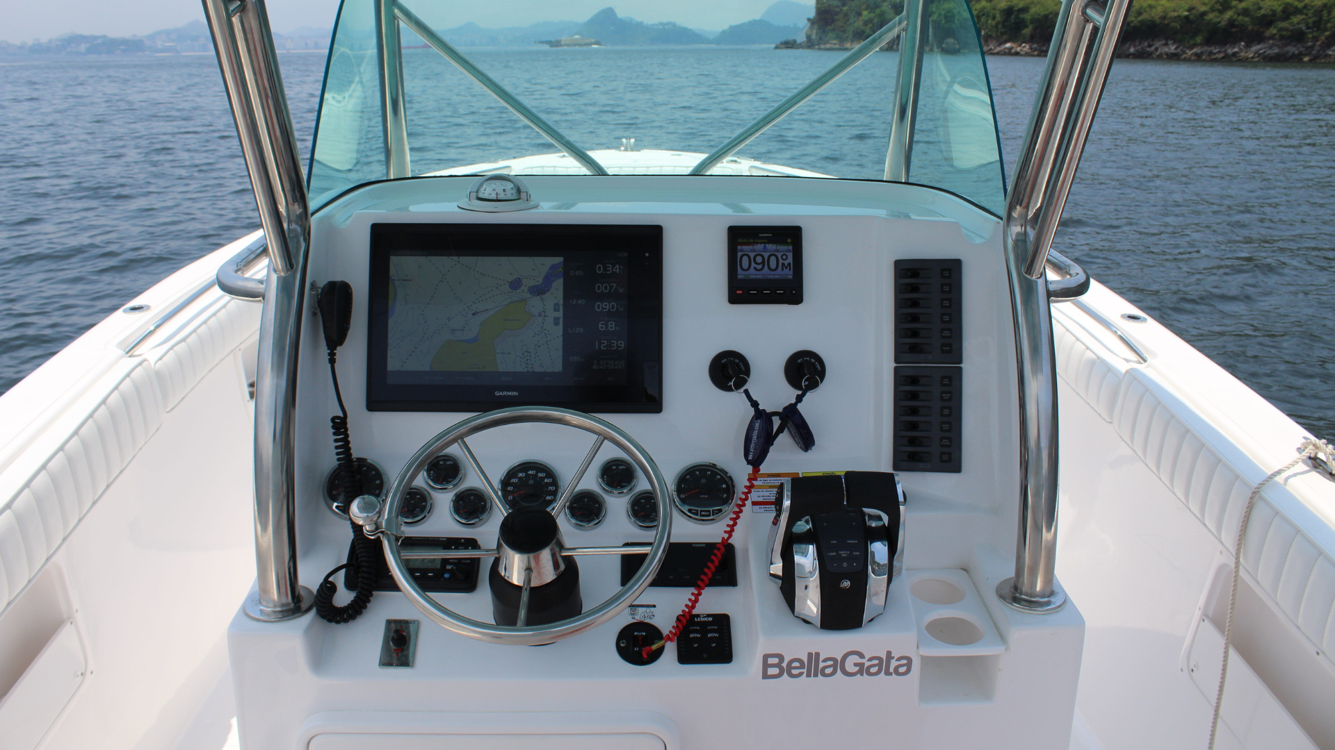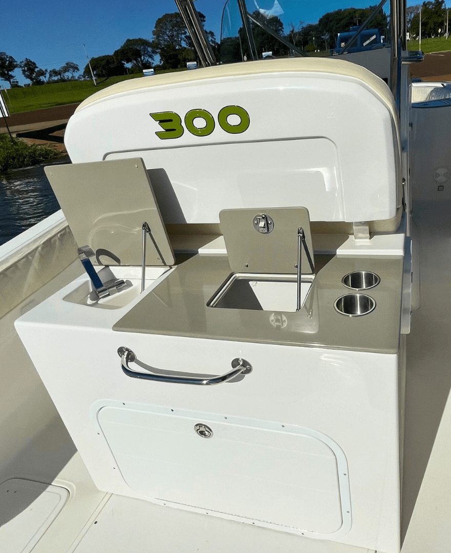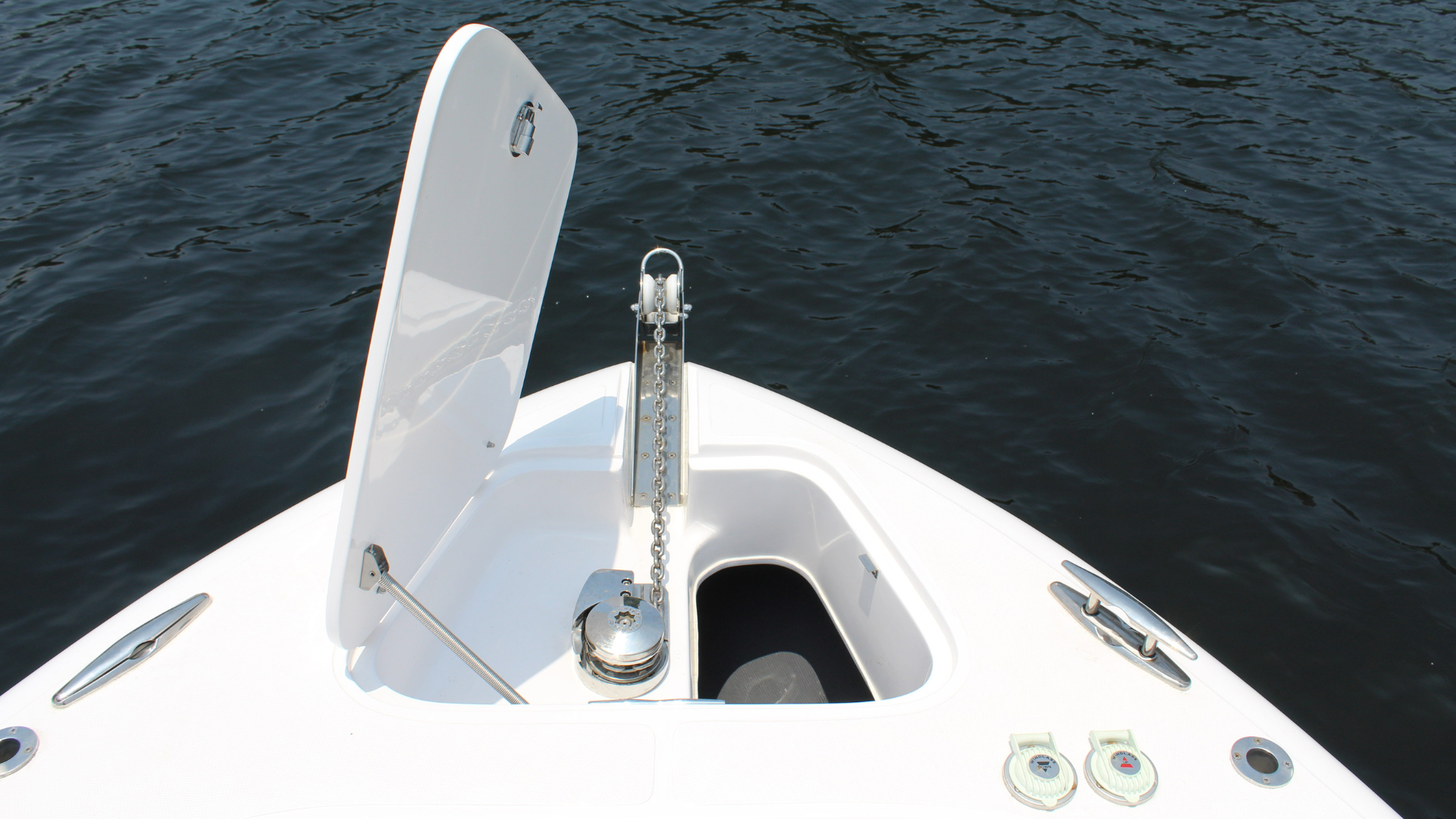 - Guincho elétrico de ancora, peito de aço inox, lançador de ancora inox, interruptores de comando na proa e painel no center console, chicote elétrico, disjuntor térmico.