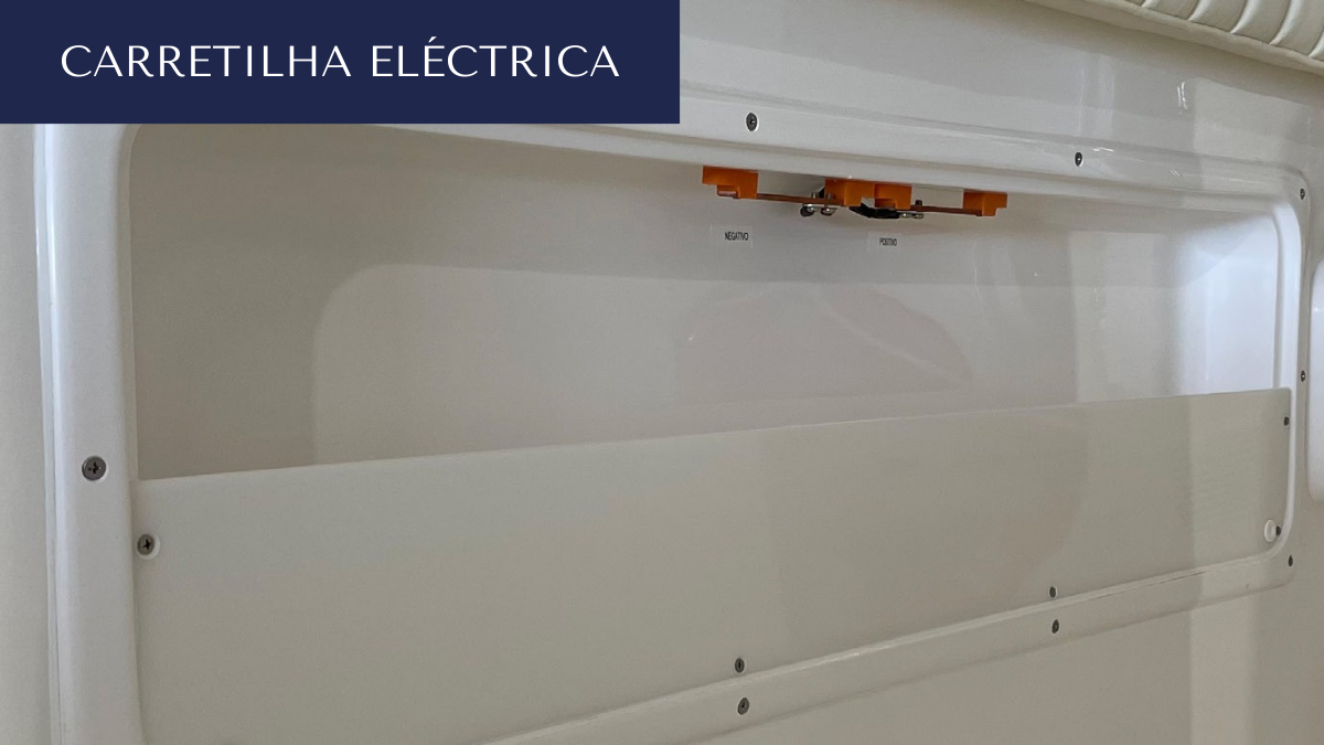 - Dois barramentos de cobre com parafusos de aço inox, eletrificados para carretilhas elétricas com ponto (+) e (-) a bombordo e boreste, disjuntor térmico de 30A.
