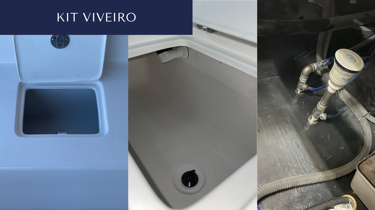 - Toalete elétrico, registro boca de lobo inox, coletor de água inox, chuveiro de água doce na cabine, saída inox, mangueiras, vigia plástica e vigia elíptica.