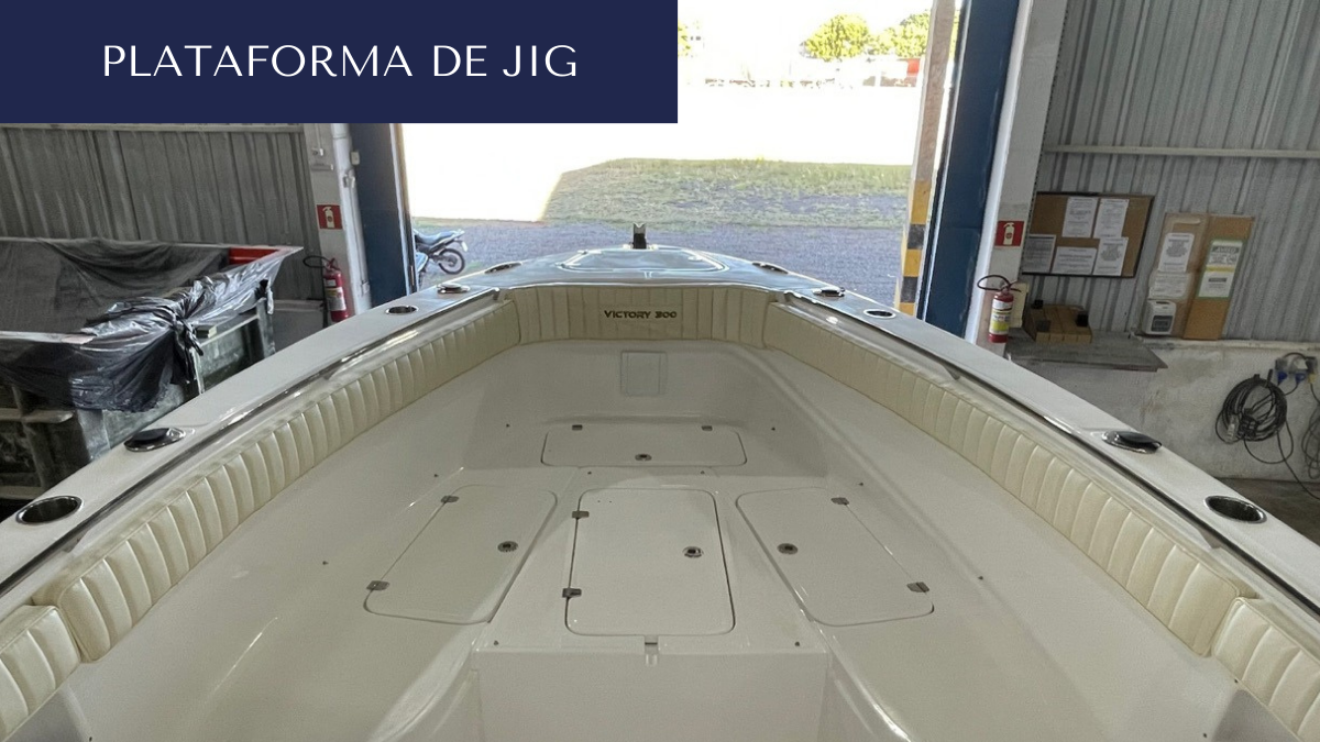 - Plataforma JIG, em fibra, com compartimento, tampa de fibra, dobradiças, fecho inox e antiderrapante.